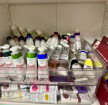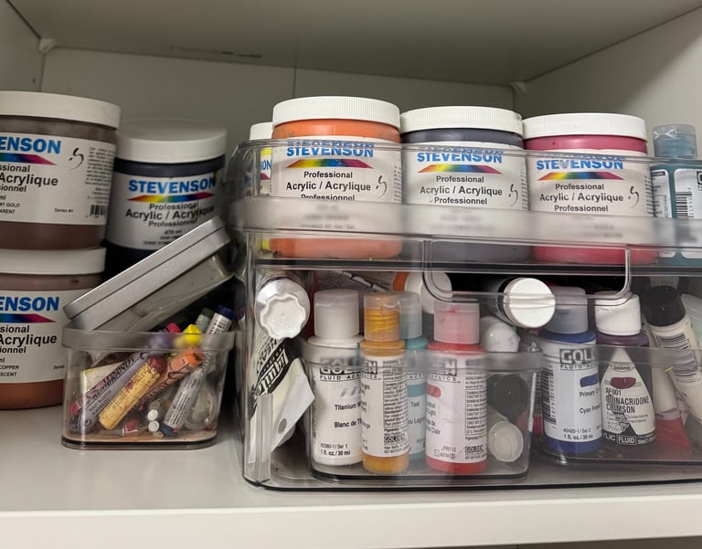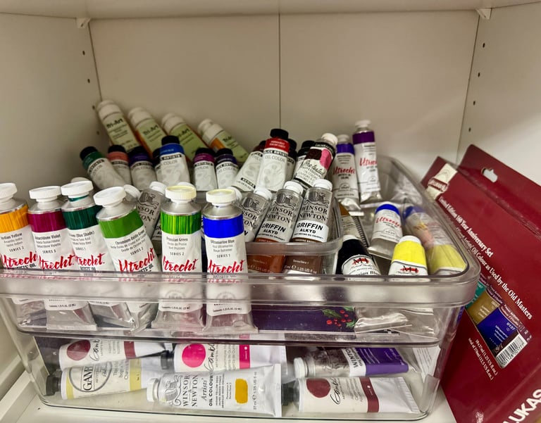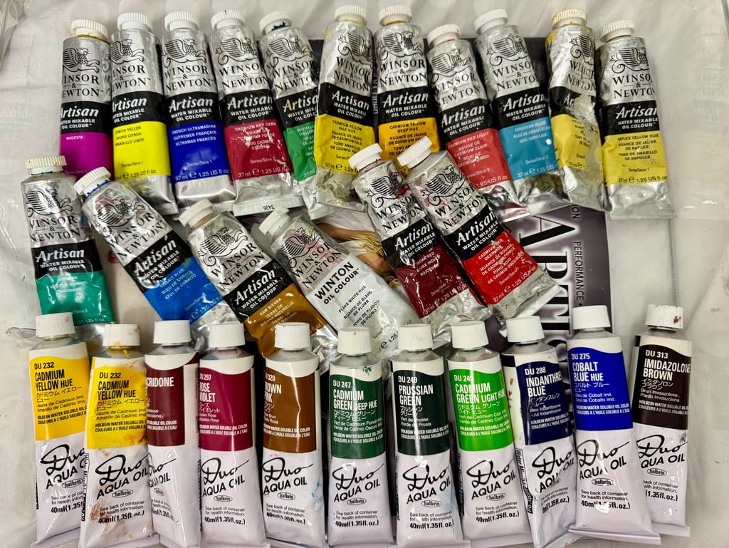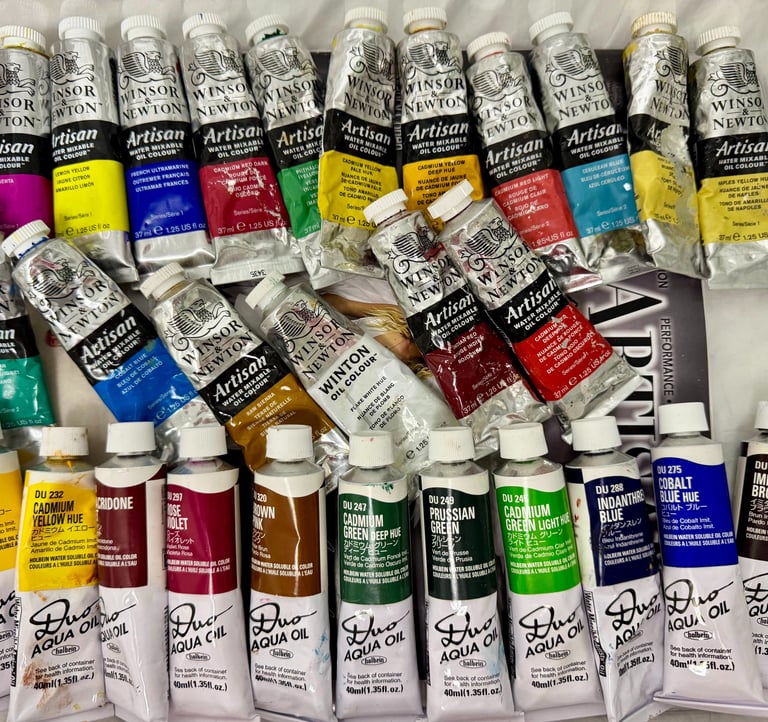 Winsor & Newton Liquin: My go-to for creating the Transparent Glazes—layering Quinacridones and Oxides to build the "Suspended Dimensions" of the cosmos.