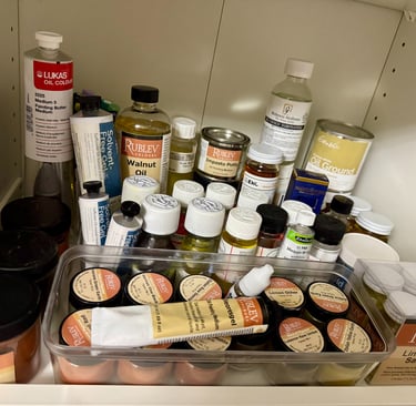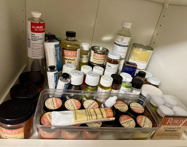 Stand Oil, Walnut Oil, & Linseed Oils: These "fat" oils provide a luxurious finish, ensuring the painting remains flexible and vibrant for centuries.