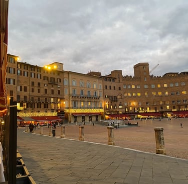 The air in Siena in December 2021 had a specific weight to it—cold, sharp, and smelling of woodsmoke and old stone. Walking toward the Palazzo delle Papesse, the city feels like a fortress of history. In my photos, you can see the Piazza del Campo bathed in that twilight glow, where the medieval architecture feels so permanent it’s almost stubborn.